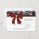 Zebra and mask diamond centered bow red black sweet sixteen birthday party masquerade ball RSVP cards.