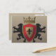 Medieval Lion Heraldry Postcard. A Coat of Arms design featuring twin lions, a shield, a crown, and a flir-de-lis. All of which were very symbolic during the medieval ages in Europe. Heraldry had depictions of powerful creatures, such as lions, dragons, and griffins, on their armor and weapons. It was a way to identify combatants on the battlefield.