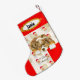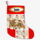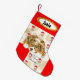 Perfect! Exactly what I ordered! I uploaded a picture of my blue chow, and the screen print was incredible. the back side of the stocking was the red and black checkered print. my puppy's name was also printed on the cuff of the stocking. PERFECT! Highly recommend this product! My puppy's name was screen printed onto the cuff of the stocking, the font was perfect!