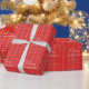 This red modern Merry Christmas wrapping paper design with presents will make any present look festive. Design by Inge Lewis. Find more matching items at the ingeinc.com store.