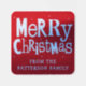 Red Merry Christmas Modern Personalized Name Square Sticker