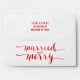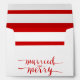 Red and White Merry and Married | Holiday Printed Envelope. Elke Clarke © Red hand lettered script typography. Red and white striped pattern on inside flap. More styles and colors available in our shop. www.zazzle.com/epclarke