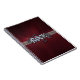 Red Metallic Cover with a heavy metal rock label. Add your name or the title of your notebook if you want.