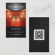 Professional customizable colorful hi-tech business card template with silver tone metallic-like details, red and orange spectral rays and QR code on back. Severe and elegant look. Don't forget to remove or replace the sample QR code