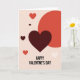 This greeting card features a large maroon heart in the middle, set against a soft beige background. Smaller hearts are scattered around it, ranging from deep red to pale off-white, giving the scene a sweet, romantic feel. In the upper right corner, there’s a bright red curved slice of a circle that adds a modern touch and breaks up the heart shapes. The hearts look smooth and simple, with no faces, but the mix of colors still feels warm and caring. Along the bottom, the card reads “HAPPY VALENTINE’S DAY” in dark sans-serif letters that are easy to read. The text sits in a straight line and helps ground the floating hearts above it. Overall, it’s a calm, loving design that feels perfect for romance or close friendship 💕❤️. Hope it helps you share a little extra love on Valentine’s Day.