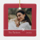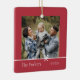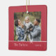 Sweet and simple Christmas photo ornament features a minimalist layout, with your family name and the year in clean, classic serif typeface on a festive red background. A petite bow beneath your photo completes the design. Add a second photo to the reverse side.