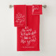 Red Modern Christmas Typography Personalized Bath Towel Set