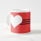 Sweet and charming Modern Heart Specialty Mug featuring a dark red background and a cute heart and striped border. This cute and girly mug is perfect for enjoying your favorite hot beverage! Customize with the text of your choosing. Click on "Customize" to find additional personalization options.
