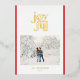 Red modern joyful 1 photo foil holiday card