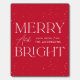 Festive holiday hot chocolate packets featuring "Merry and Bright" in white lettering and red background with subtle white dots. Personalize the red holiday hot chocolate packets with your custom greeting and family name in white lettering. The personalized hot chocolate packets are perfect to use as stocking stuffers and holiday party favors.