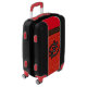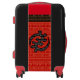 Travel in style with our cool cultural luggage design featuring a red mud cloth pattern adorned with a black patterned Adinkra symbol.