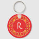 Red Monogram Decorative Floral Tiles Keychain