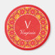 Lovely decorative tiles form a repeating pattern of bright and bold red and gold flowers. Personalize with your name and initial or any short message.