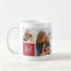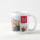 This simple personalized photo mug design puts 6 of your favorite snaps front and center, along with a single initial monogram on each side. Customize with six square photos of friends, kids, grandchildren, pets, or your favorite places, with your initial in white lettering on a red square.