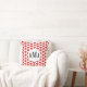 Red Monogram Heart Pattern Custom Throw Pillow