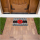 Make a fashion statement at your door when welcoming people to your home with this door mat monogrammed with your initial. Great for the door to your office as well. The Chevron ziz zag (zizzag) graphic design is one of the hottest art and design trends, and is extremely popular from fashion to home decor. This sophisticated black and white chevron rug is given an eye popping dash of color with a red circle for personalizing with your monogram initial and sits on a black strip with red edges. Easy to customize!