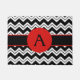 Red Monogram Initial Black White Chevron ZigZag Doormat