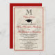 Red with marble cream pattern background design. Classic monogrammed single letter initial (your choice of first name or last name) is stately and handsome for the male or female college, trade school, or any level graduate. This inexpensive, cheap value priced modern classic style graduation announcement or graduation ceremony invitation is perfect for university or graduate school graduates, for an open house, casual lunch reception or formal party. Celebrate the monumental accomplishment of a bachelor's degree, associates degree, masters or doctorate degree. Classic design features subtle laurel wreath emblem, personalized monogram, along with elegant script writing. Very Easy to personalize with your information. Choose your color by choosing "customize further" and changing text and background colors on front and back. Formal and traditional classicsl style graduation invite for men or women, girls or boys of any age.