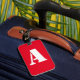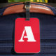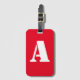 Design features a bright, red background to your monogram in clear, white-stenciled lettering. Makes finding your luggage just a bit easier! Available in a variety of colors.
