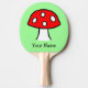 A cartoon red spotted mushroom on green. Your name can be added to both sides.