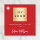 Red background, white text. Personalize and add your business logo, text and name/signature.