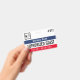 Visitor pass badge with a simple design in black, white, navy blue, and red. Authorized guest is written across the guest badge, but you can change the wording to suit your needs. Personalize further with your business logo and the name of the company.