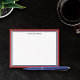Elegant personalized note cards in white with borders in red and navy blue. Add your name in dark blue!