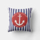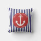 Red Navy Blue Stripes Boat Name Anchor Nautical Outdoor Pillow
