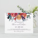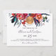 Red navy floral boho chic monogrammed wedding invitation