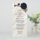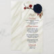 beautiful navy blue and red flowers with gold bronze leaves on marble background botanical wedding menu.