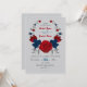 red & navy flowers botanical wreath wedding invitation