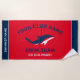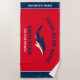 Bold red and navy bring high-energy team spirit to this swim team beach towel. Features editable club name, Swim Team text, mascot name, and a dolphin logo placeholder ready for your team's own graphic. The swimmer's name runs vertically along the side for easy spotting at meets. All text and colors are fully customizable. A fired-up gift for swimmers, relay teams, and swim coaches.