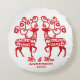 Red Nordic Reindeer Custom Couple's Round Pillow