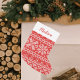 Add a festive touch to your home and hearth this holiday season with custom holiday stockings! The custom stockings feature a red and white sweater pattern with a white band at the top. Personalize the Christmas stockings with your name or custom monogram.