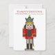 Budget company Christmas card with red nutcracker is easily modified. Add your logo and customize your holiday message. Nostalgic nutcracker artwork is versatile for Bavarian or old town village Christmas themes.