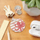 This trendy modern beach style keychain contains a red octopus against a white and sand striped background.