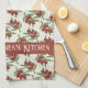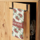 A light yellow kitchen towel with a red olive pattern . Personalize with your text or keep it as it is .