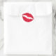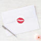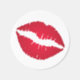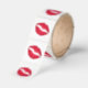 Rich red lipstick print of a kiss on a roll of stickers.