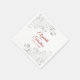 These beautiful napkins will make your wedding reception something special. They feature a simple yet elegant design with red text on a white background with a lacy silver faux foil curls and swirls in the corners. Easily personalize with your names and the wedding date.