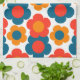 Stylish red, orange, and blue flower pattern kitchen towel featuring chic tropical blooms, whimsical botanical motifs, and retro spring summer charm for a vibrant nature-inspired accent.