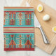 Red Orange Brown Aqua Turquoise Blue Tribal Art Kitchen Towel