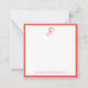 Red Orange White Handwritten Monogram Simple Elegant Template Personalized Flat Note Card.