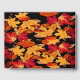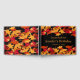 Easily personalize or remove the text on this lovely birthday party guest book which displays fall foliage colors of red, orange, yellow and brown on a black background.