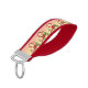Here is a cute animal wrist keychain featuring a red monkey with a long curling tail on a tree branch surrounded by green leaves.