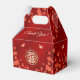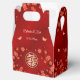 I offer the same box with bride and groom names on the front-and backside to give to the couple. Red oriental blossom branches and a gold double happiness symbol on a ruby red shimmering background. Custom bride and groom names in an elegant font. With a thank you expression on the backside.