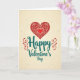 This Valentine's Day card features a large deep red heart at the top, filled with white scrollwork, tiny hearts, and lace-like details around a solid red center. The heart feels warm and romantic, like a classic love note, and it stands out clearly against a soft cream background with small gray dots. Below the heart, the message “Happy Valentine’s Day” is written in a flowing script style. The letters are teal, and the words sit centered in the lower half of the card for an easy-to-read look. Small red decorative swirls sit near the word “Happy,” adding a sweet touch without crowding the design. A red dashed border runs around the edges to frame everything neatly. It’s a simple, heartfelt design that’s perfect for saying you care ❤️