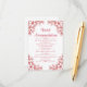 Red Ornate Wedding Hotel Accommodation Enclosure Card
