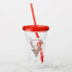 This acrylic drink tumbler with straw and lid has a brown deer head with a black etched face outlined in deep red with large antlers. Customize your text with the template.