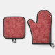 Red Paisley Damask Designer Floral Classic Oven Mitt & Pot Holder Set