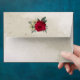 Unique wedding envelope featuring romantic red and pale yellow flowers and green leaves.